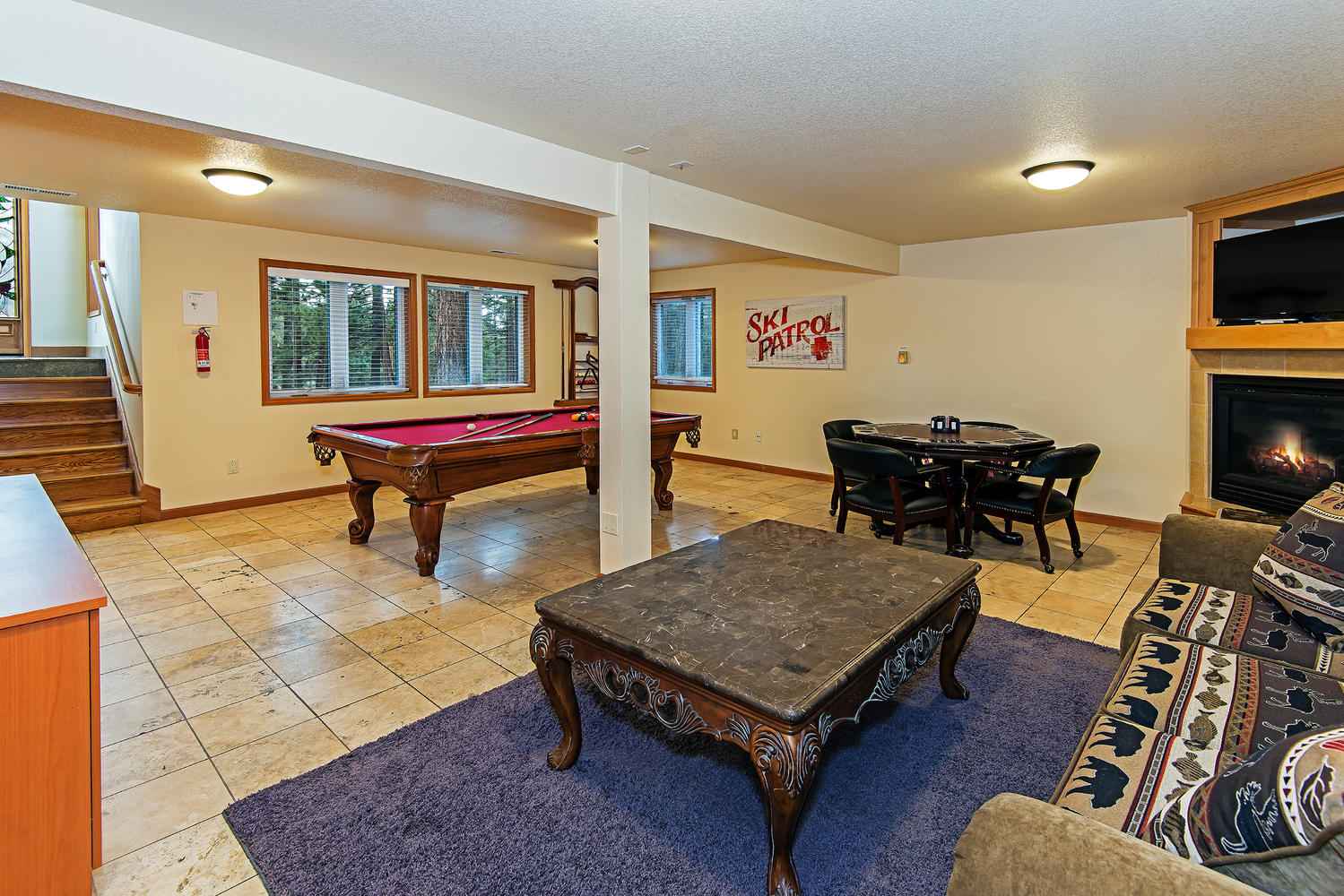 Bottom floor game room adds more TV viewing and a Pool table.